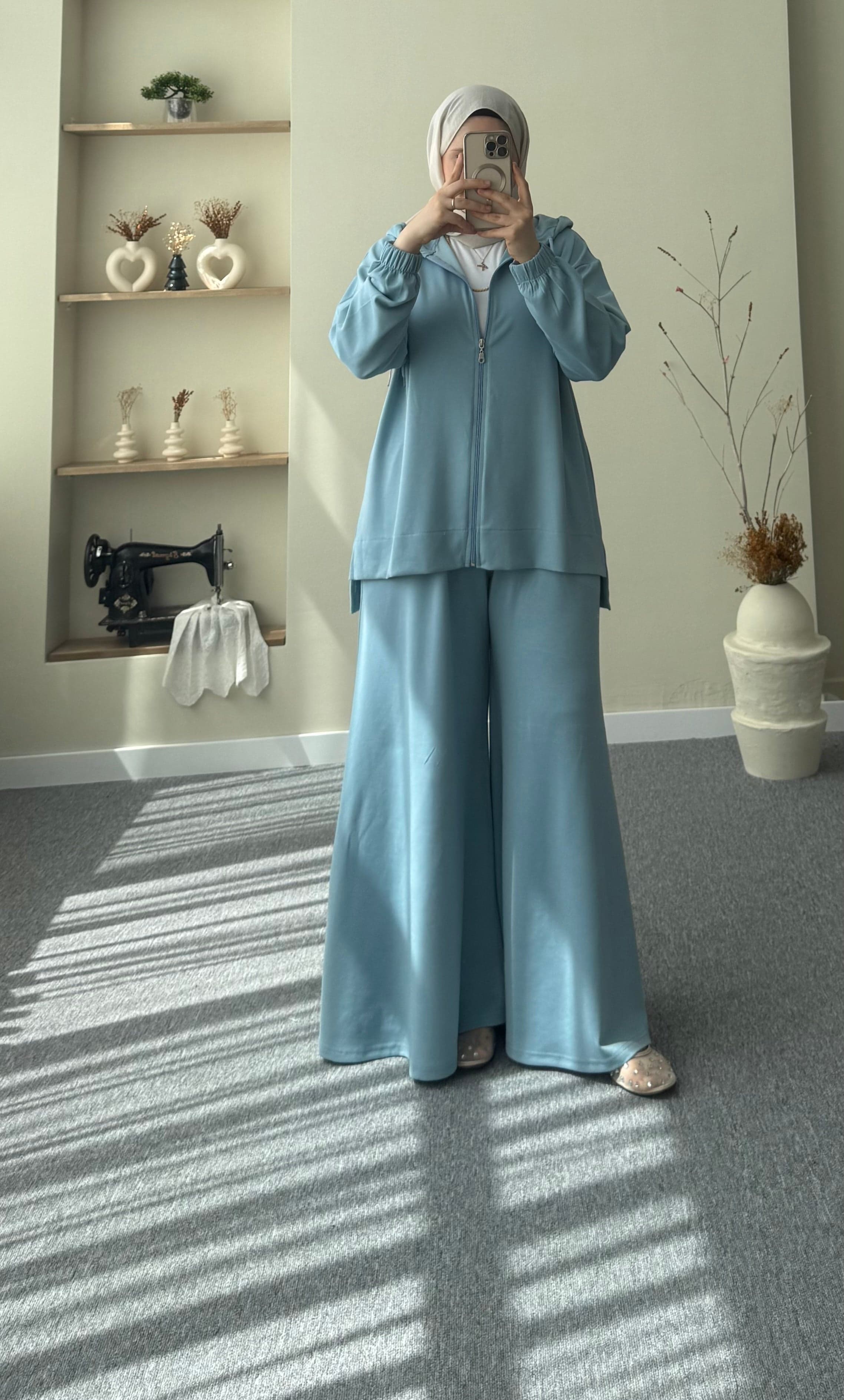 - بلوزة واسعة بسحاب أمامي تعطيك حرية الحركة وراحة طول النهار.